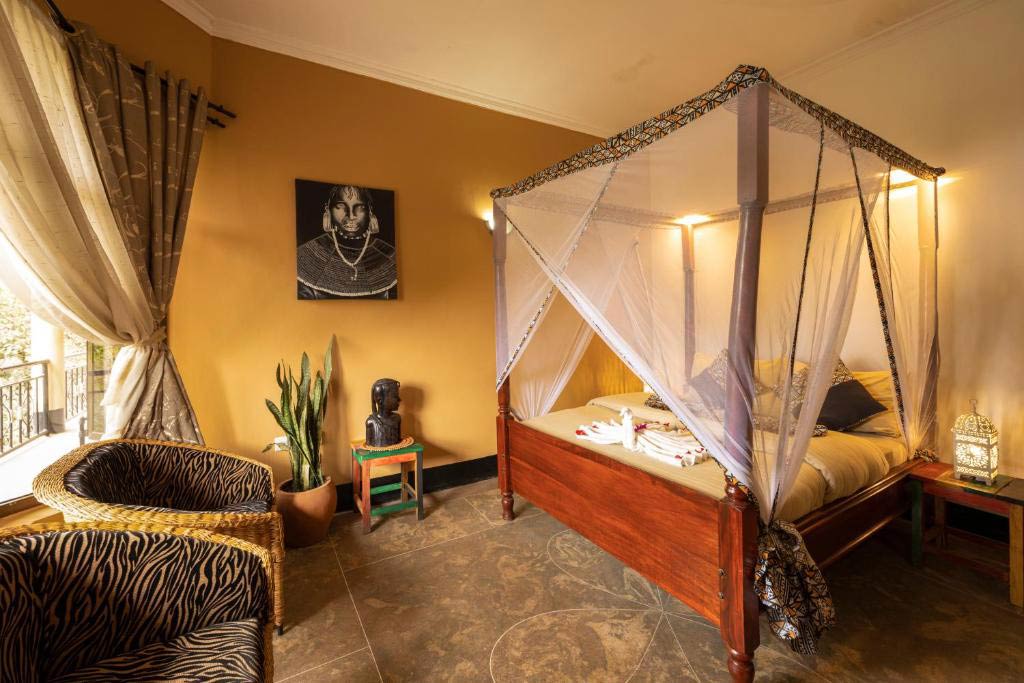 Africa Safari Arusha is an intimate lodge set in the village of Sakina, just outside Arusha’s city centre. The property accommodation consists of 8 Standard rooms and 8 Luxury rooms, surrounded by lush green gardens, a swimming pool with sun loungers, a half-open restaurant with a fireplace for the colder evenings, and a very unique tree bar.